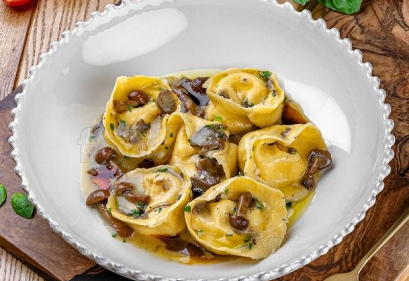 Duck leg, mushrooms, onion, thyme, truffle paste, butter, pasta, garlic, hot pepper. Contains allergens: dairy, egg, gluten.