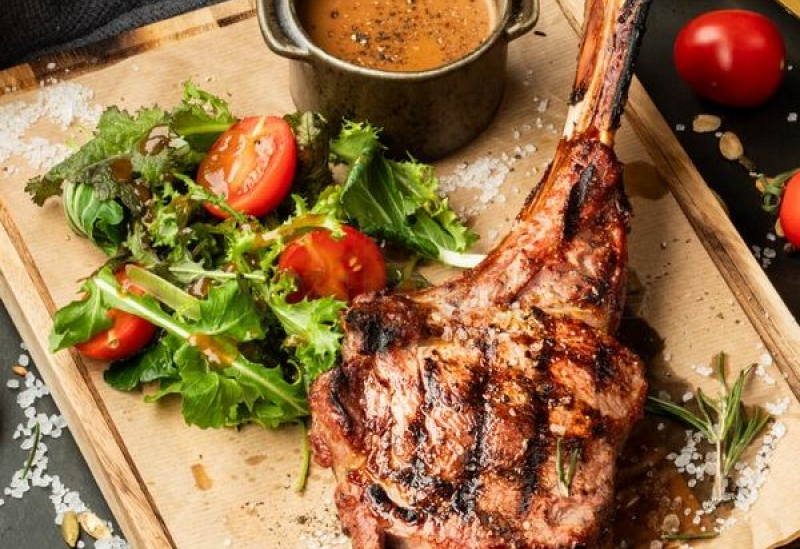 Beef, mixed lettuce, cherry tomatoes, rosemary, vinaigrette. Contains allergens: milk.