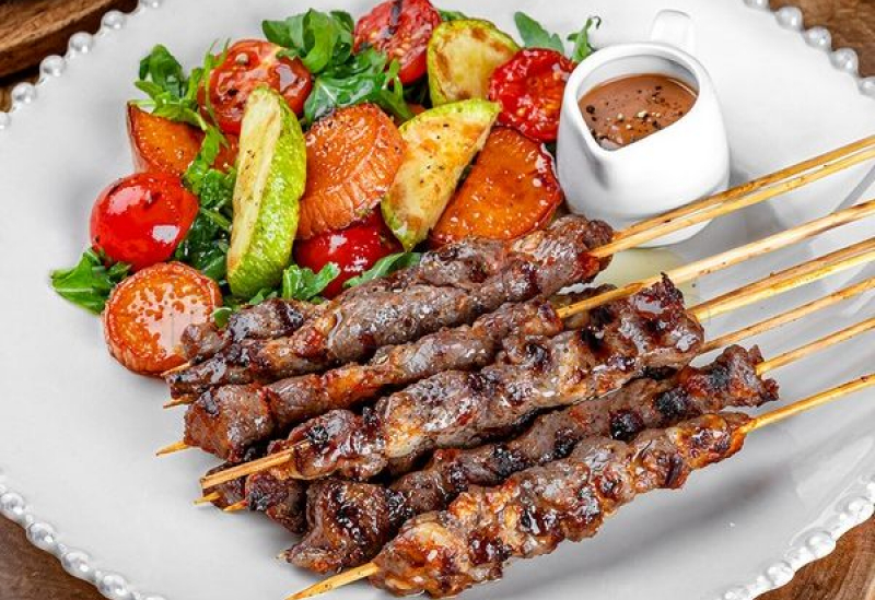 Miel, cartof dulce, roșii cherry, dovlecel, salată rucola, sos de piper. Conține alergeni: lapte.