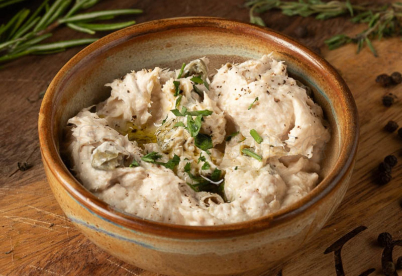 Ton conservat, cremă de brânză, capere, pătrunjel. Conține alergeni: pește, lactate.