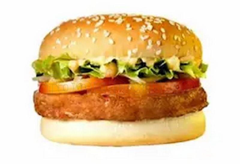 chiflă, pește crocant, brânză, salată verde, castravete, roșii, sos