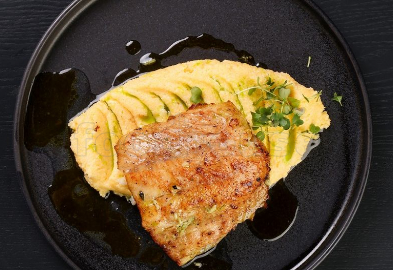 Филе судака со сливочной полентой и муждеем
