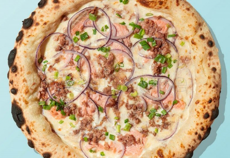 семга, тунец, красный лук, моцарелла, пармезан, соус