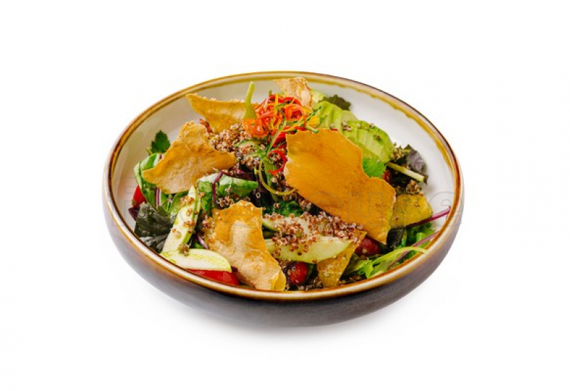 Листья Салата, Авокадо, Зеленое Яблоко, Апельсины, Болгарский Перец, Семена Киноа, Цитрусовый Соус.