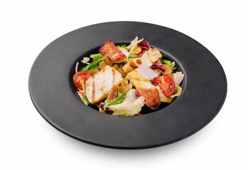 Салатный микс, сыр халуми, смесь сухофруктов, помидоры, огурцы, лук, смесь орехов